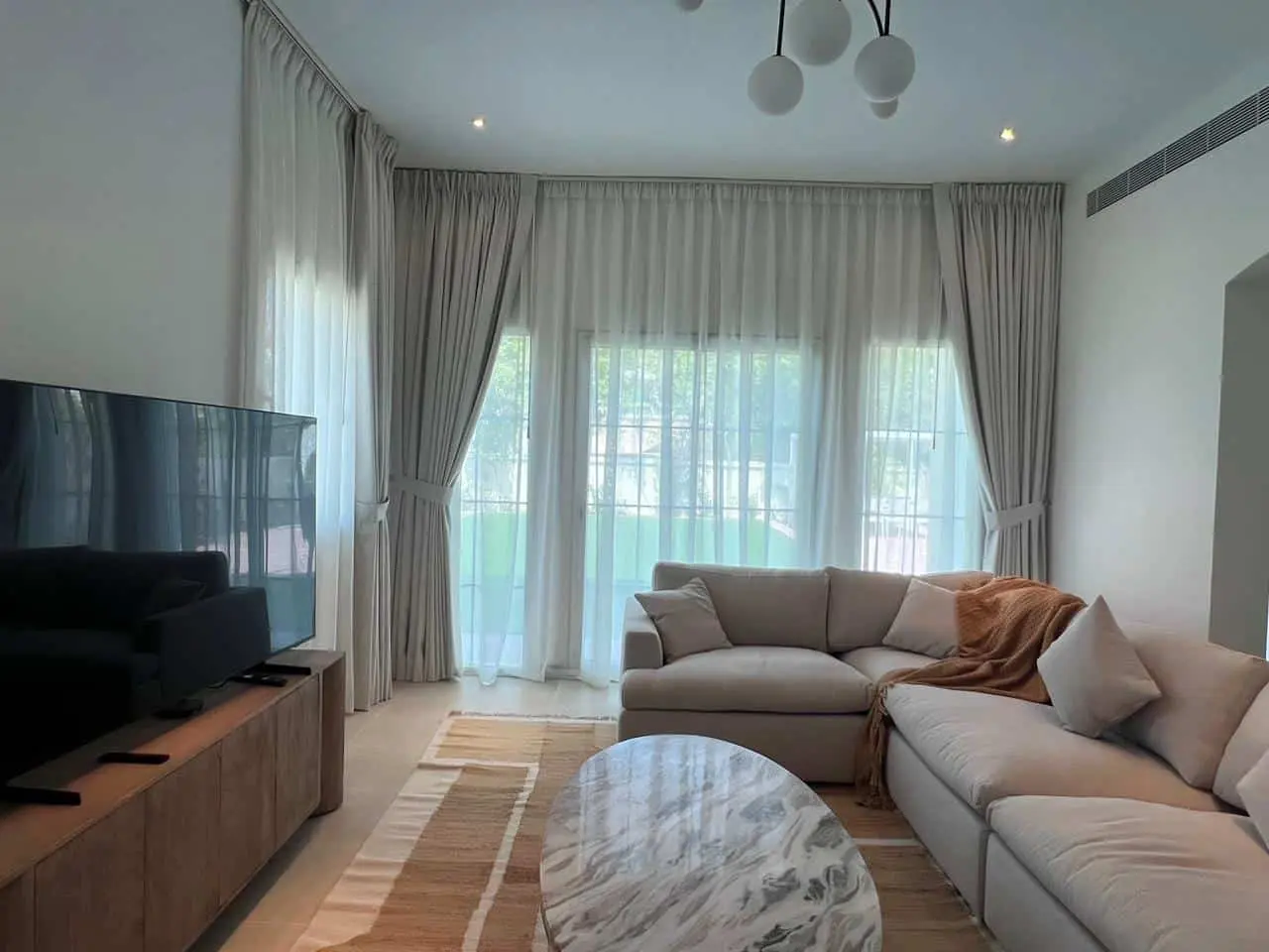 Our services are unmatched, offering best blackout curtains for living rooms, curtains for kitchens, blackout curtains for bedroom and blinds for offices that elevate your space. In our portfolio you will find 1000+ fabrics of blackout curtains. sheer curtains, acoustic curtains, motorized curtains, – all tailored specifically for you . You cant also miss our wide custom made collection of Roman blinds, Roller blinds, Wooden Venetian blinds, Vertical blinds and trending lately motorized blinds. As a trusted curtain dealer, we use only high-quality materials to ensure exceptional results every time. Whether you’re looking for the best luxury curtains in Dubai or need expert curtains installation, our experienced team delivers flawless service tailored to your needs. We completed many projects in Dubai area like Dubai Marina, Damacc Hills. Shoba Heartland. Palm Jumeirah or our recent curtains projects in new development Dubai Arabian Ranches 3.t